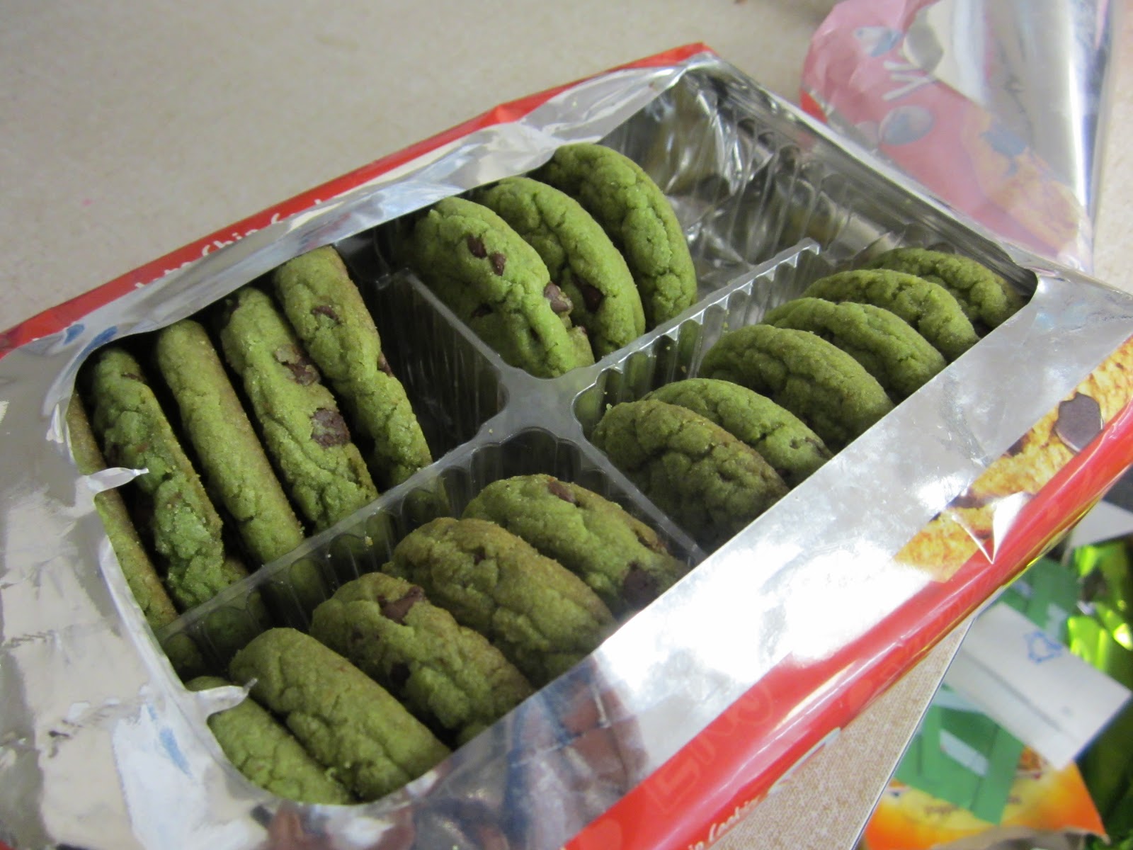 My teaching partner baked some homemade chocolate chip cookies and dyed them green, so we just bought an extra pack each and exchanged them beforehand with the storebought ones. Then I had another teacher quickly switch the packages when we were out of the room :)